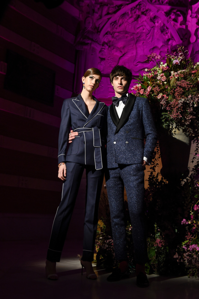Juan Avellaneda se movió como pez en el agua por el Recinto Modernista de Sant Pau ataviado con su elegantísimo esmoquin en tonos dark navy, plata y negro, sus grandes gafas de pasta y una pajarita. El diseñador de moda barcelonés, director creativo y estilista de famosos descartó el desfile sobre la pasarela para la presentación de su colección #lessgrunge #moreglamour y ofreció una fiesta de brillo, color, glamour y buen rollo que sirvió de cierre de la 25 edición de la 080 Barcelona Fashion Week y a la que acudieron multitud de amigos que, junto a los modelos, lucieron los tuxedos más icónicos de Avellaneda y algunas de las novedades masculinas y femeninas. Una auténtica oda al glamour y a la belleza en todas sus formas.